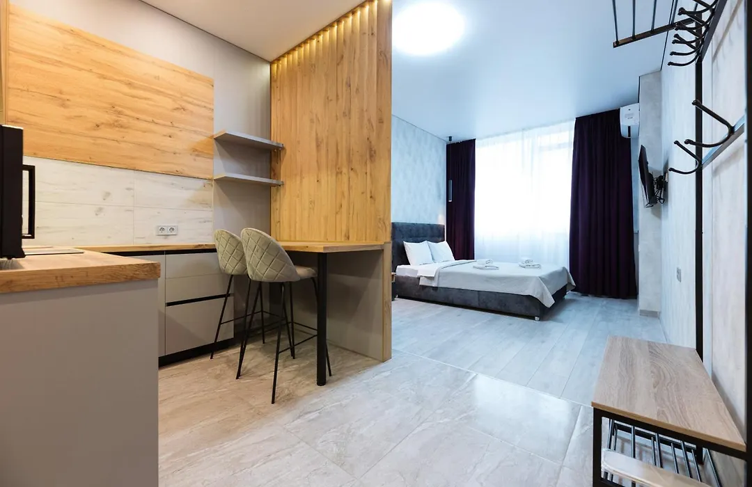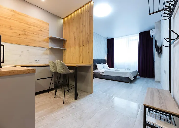 В апартаментах для самостійного приготування їжі є повністю обладнана кухня з електрочайником, холодильником і кухонним приладдям. Гості розміщуються в межах 5 км від Міжнародного аеропорту "Київ".